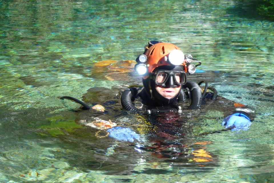 En la foto Jason, viendo la luz después de 4 días de buceo y exploración.
